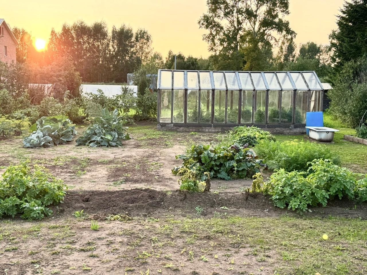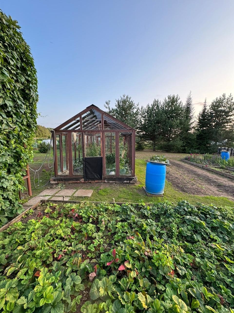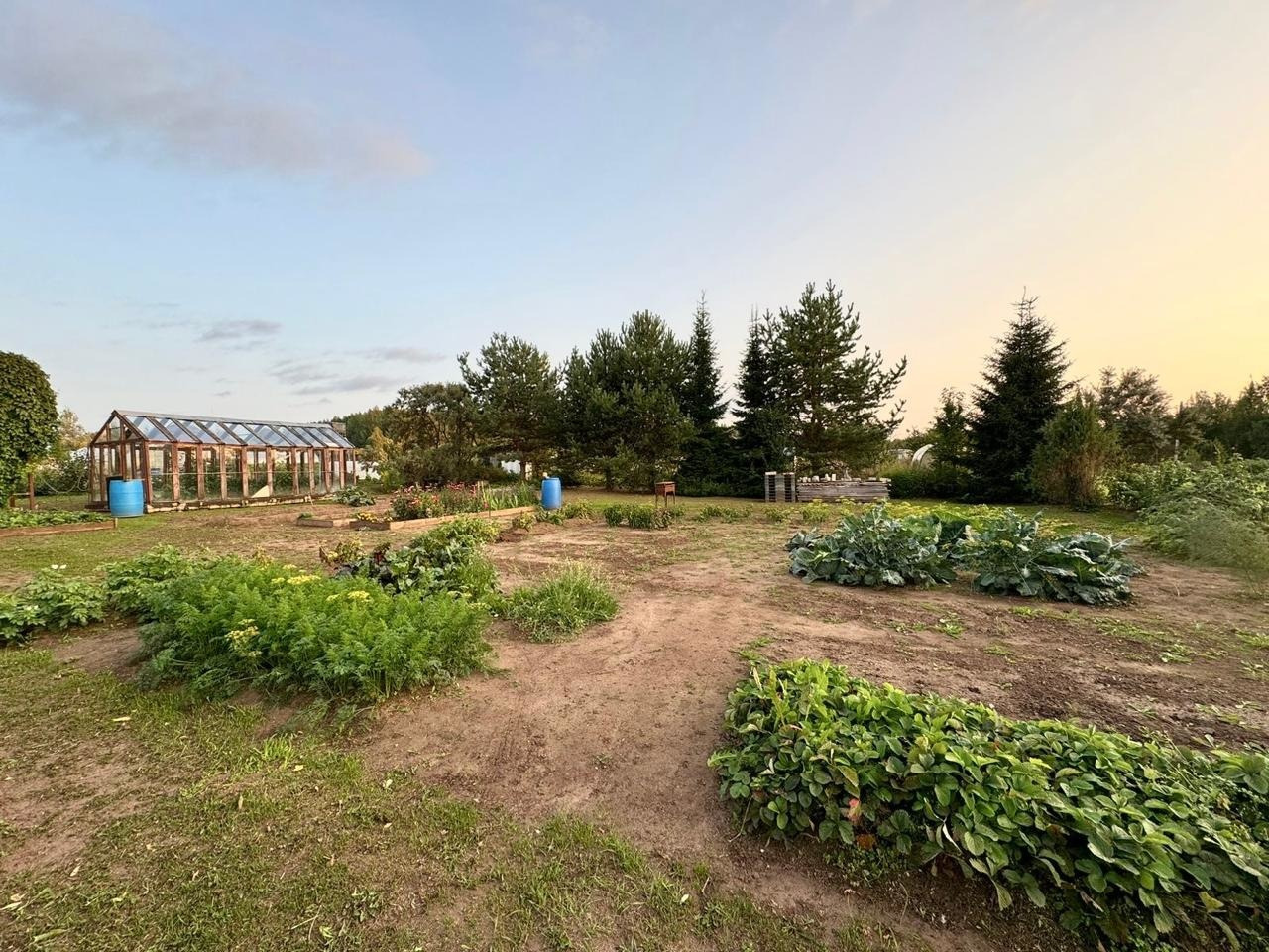 - на участке есть хозяйственная постройка для хранения инвентаря, две большие стеклянные теплицы, скважина, колодец.