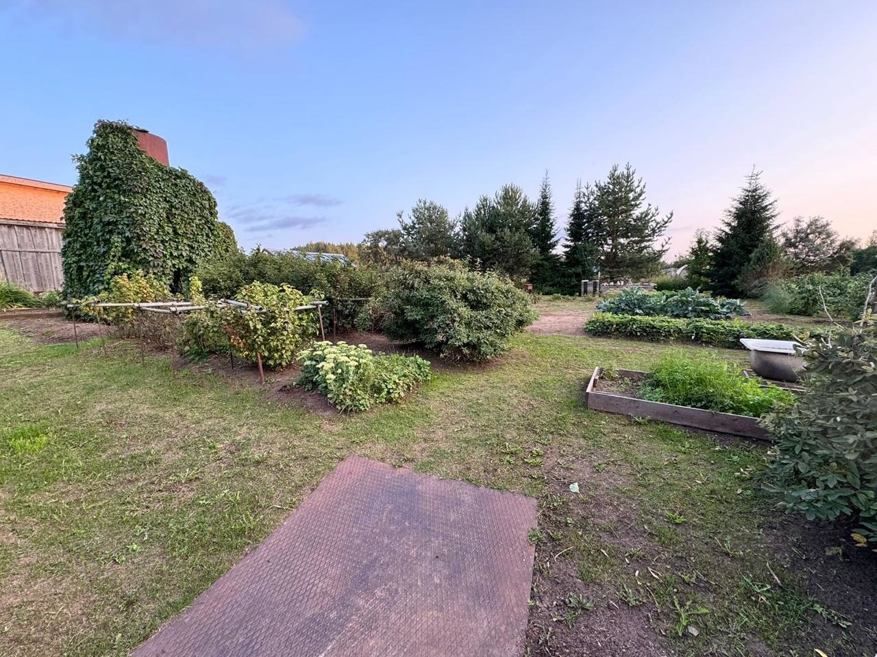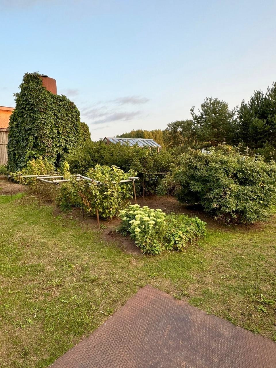 - по периметру участка с одной стороны высажены хвойные деревья, которые добавляют атмосферу лесной природы, можно обустроить отличную зону отдыха. Так же посажены декоративные и ягодные кустарники, плодовые деревья